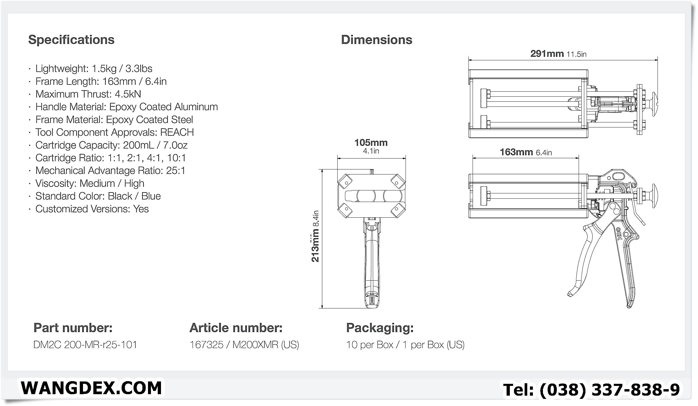VBM MR 200X เป็นเครื่องมือ Manual ขนาดเหมาะมือใช้กับกาวอีพ๊อกซี่ หรือกาวโครงสร้างชนิดหลอดคู่ เครื่องมือนี้จะดันส่วนท้ายของกาวให้มีอัตรส่วนที่ออกมาเท่ากัน สามารถช่วยควบคุมปริมาณในการผลิตได้ ควรใช้ควบคู่กับก้านมิกซ์ (Staticmixer, Mix Nozzles)
