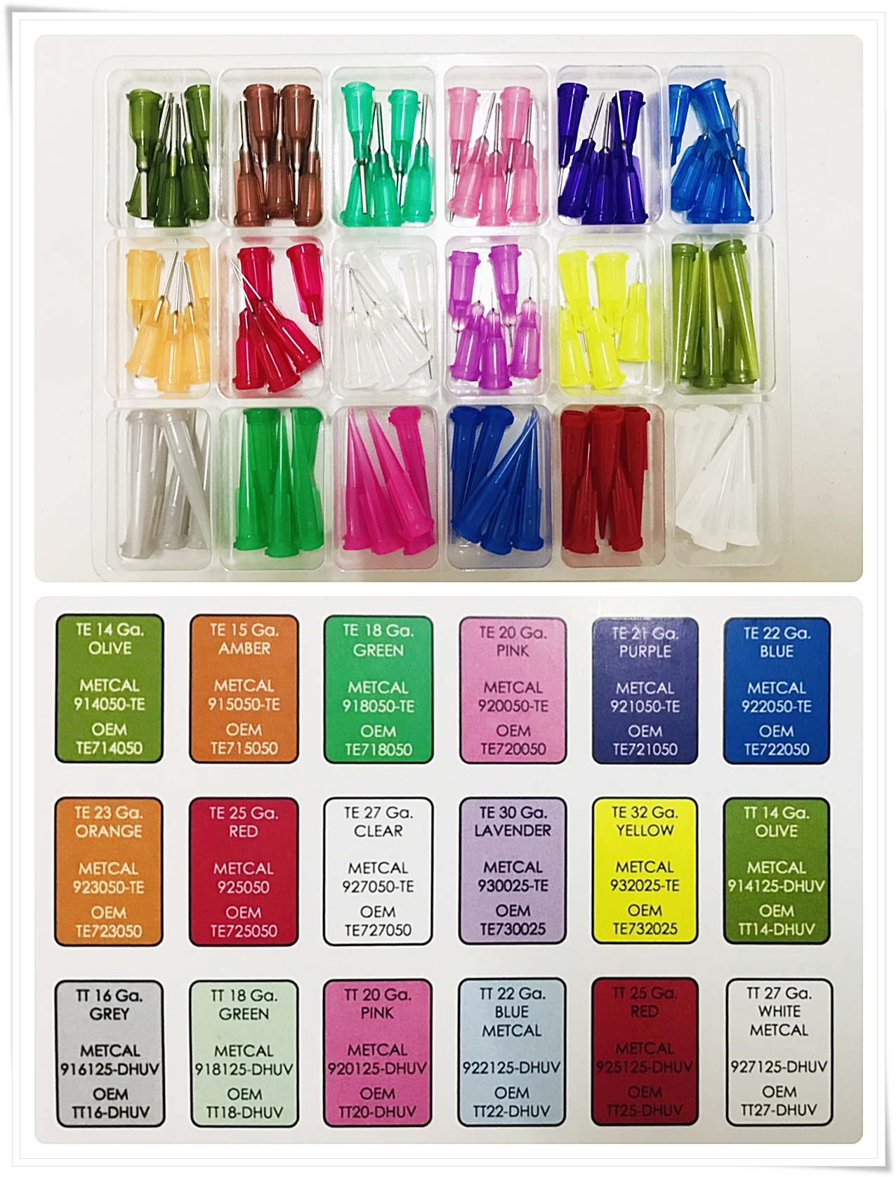This dispensing needle kit contains a selection of the 36 most common straight, bent, and conical dispensing needles with Luer-Lock connections. You can test the needles and decide which one best suits your needs.